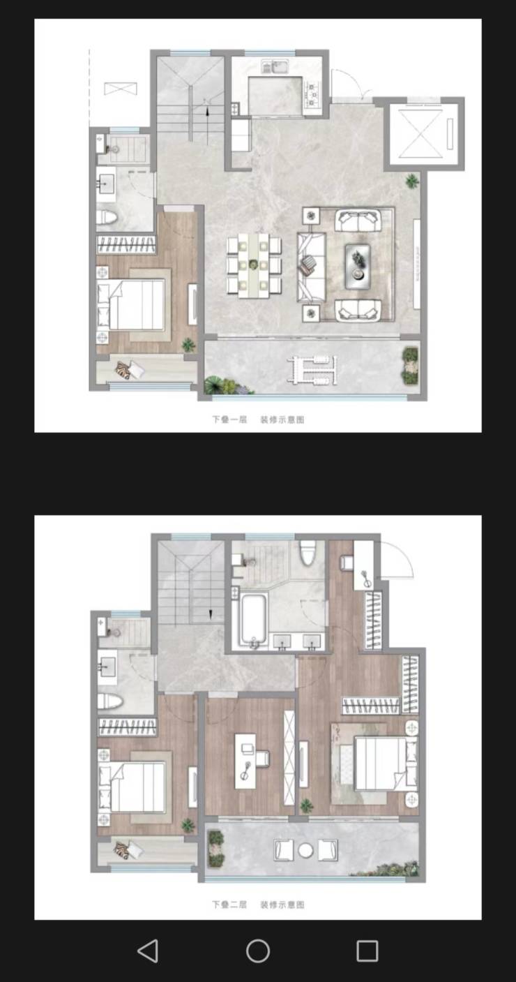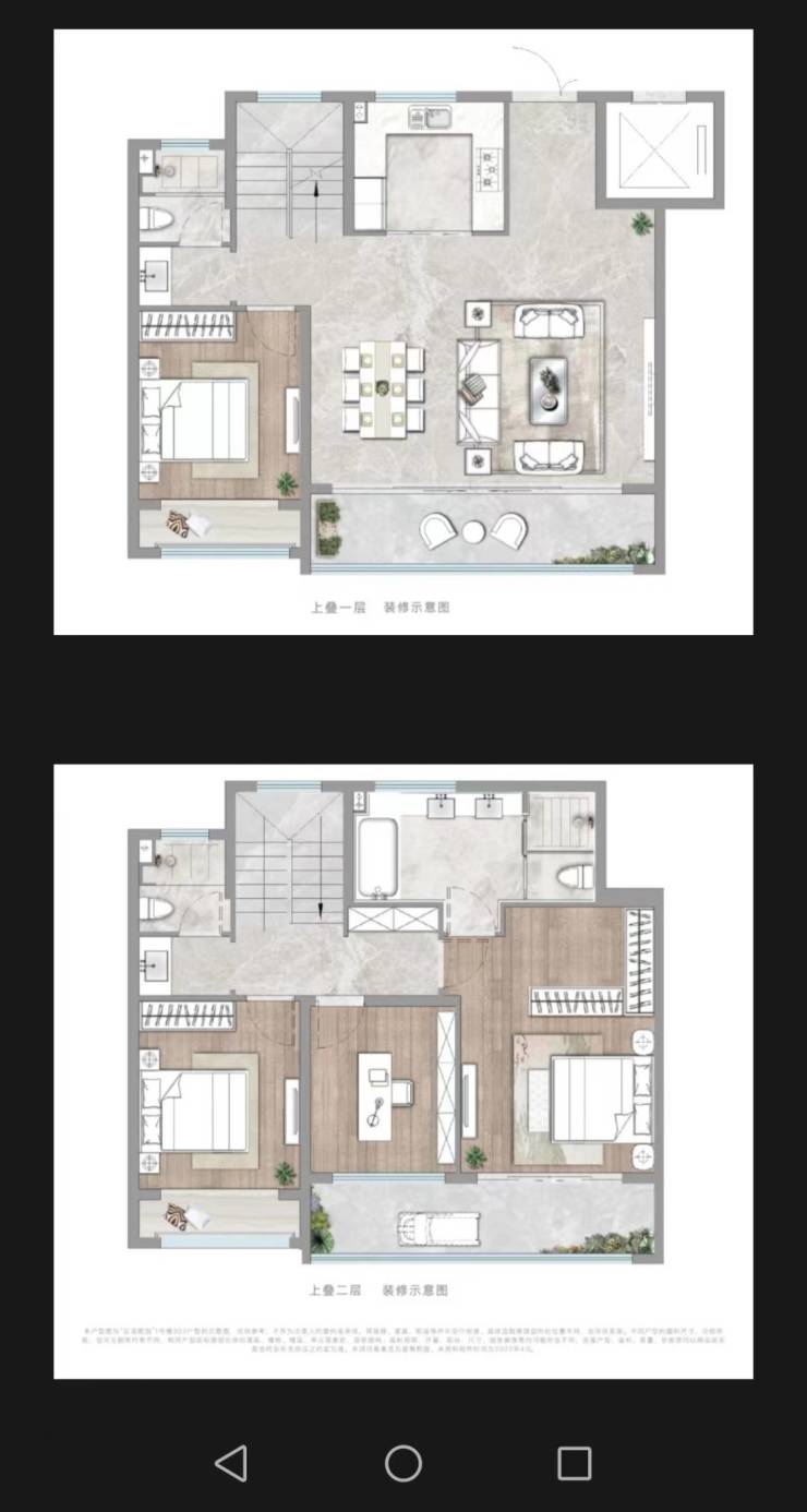 叠墅:上叠160㎡(带约60㎡天台)、下叠180㎡(带40-100㎡花园),毛坯交给